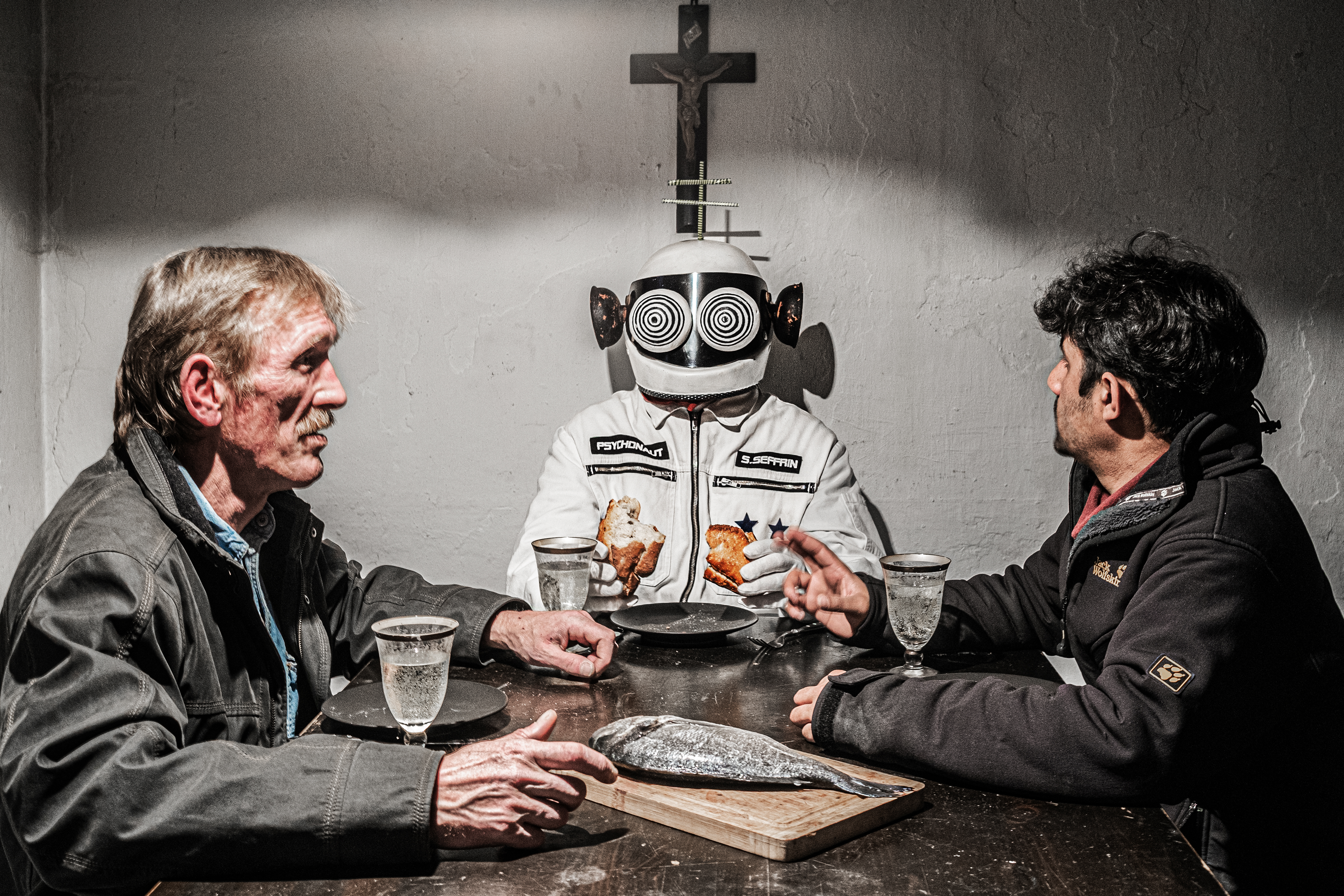 Stefan Seffrins Psychonaut weiß durch lange und nachhaltig engrammierte Prägung: Solche Orte sind nicht leicht zu finden. Eine lange und beschwerliche Reise wartet auf den Suchenden. Seffrins Psychonaut durchwandert die Beichtstühle, Jägersitze, Vulkangipfel und Winterlandschaften der äußeren Welt auf der Suche nach Seelenverwandten, welche auch die Sehnsucht und Dringlichkeit seiner Reise in ihrer inneren Welt mit sich schleppen. Häufig sind es Outdrops, Randständige der Gesellschaft, denen der Psychonaut begegnet. Dies ist kein Zufall. Die Psyche verbindet sich, darauf verweist uns der Begriff Psychonaut, mit der Nautik, der Lehre von der Führung eines Schiffes. Sie platziert, durch alle Stürme hindurch, im Ausguck, dem höchsten Punkt sitzend, ihren Blick Richtung Utopia. Für ihre Suche bleibt nicht ewig Zeit, kaum einer spürt das tiefer als der Psychonaut. Das Gehirn altert mit uns. Wenn sich die Engramme aufzulösen beginnen, verschwindet schrittweise auch das Heimatgefühl. Die Orte, an denen es uns gut ging, verblassen. Ein Grund mehr für den Psychonauten, unentwegt zu wandern, die Heimatgefühle als Wegzehrung immer bei sich.